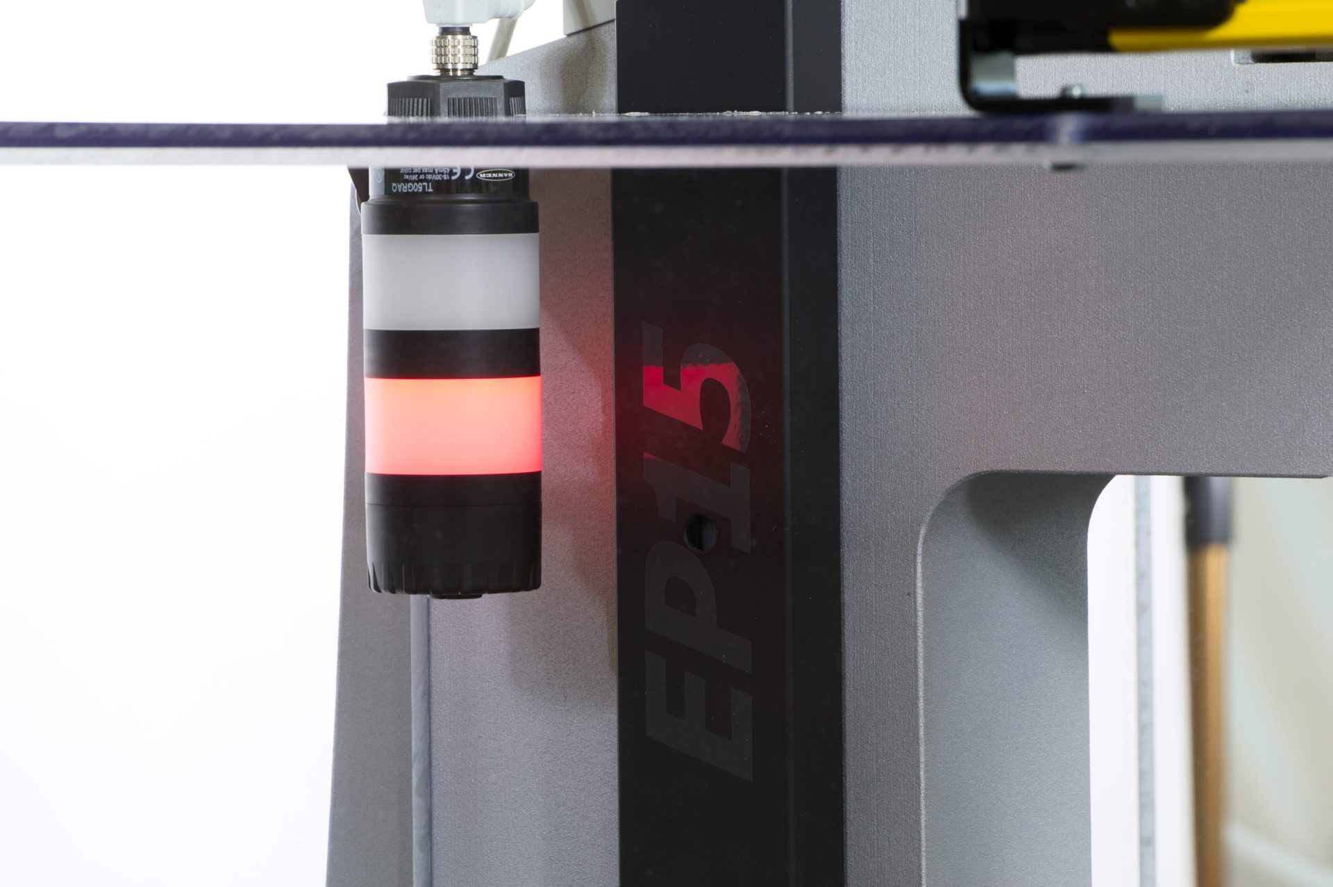 A light indicator shows when the press is at rest and the work area is safely accessible. This prevents unnecessary machine stops caused by accidental activation of safety barriers during rod movement.